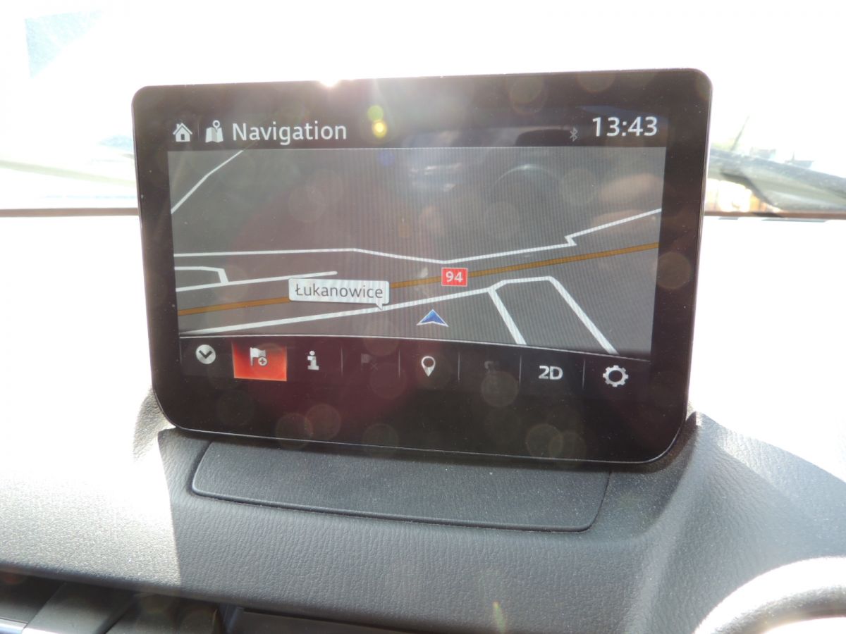 Radio z nawigacją + wyświetlacz pochodzi z samochodu Mazda 2 III DJ po lifcie z 2022 r. Z silnikiem 1.5 SKYACTIVE P5 75 KM z przebiegiem 35 tkm. Kod lakieru 47S. Model 3-ciej generacji produkowany w latach 2015 - 2023 z liftingiem w 2020 roku.